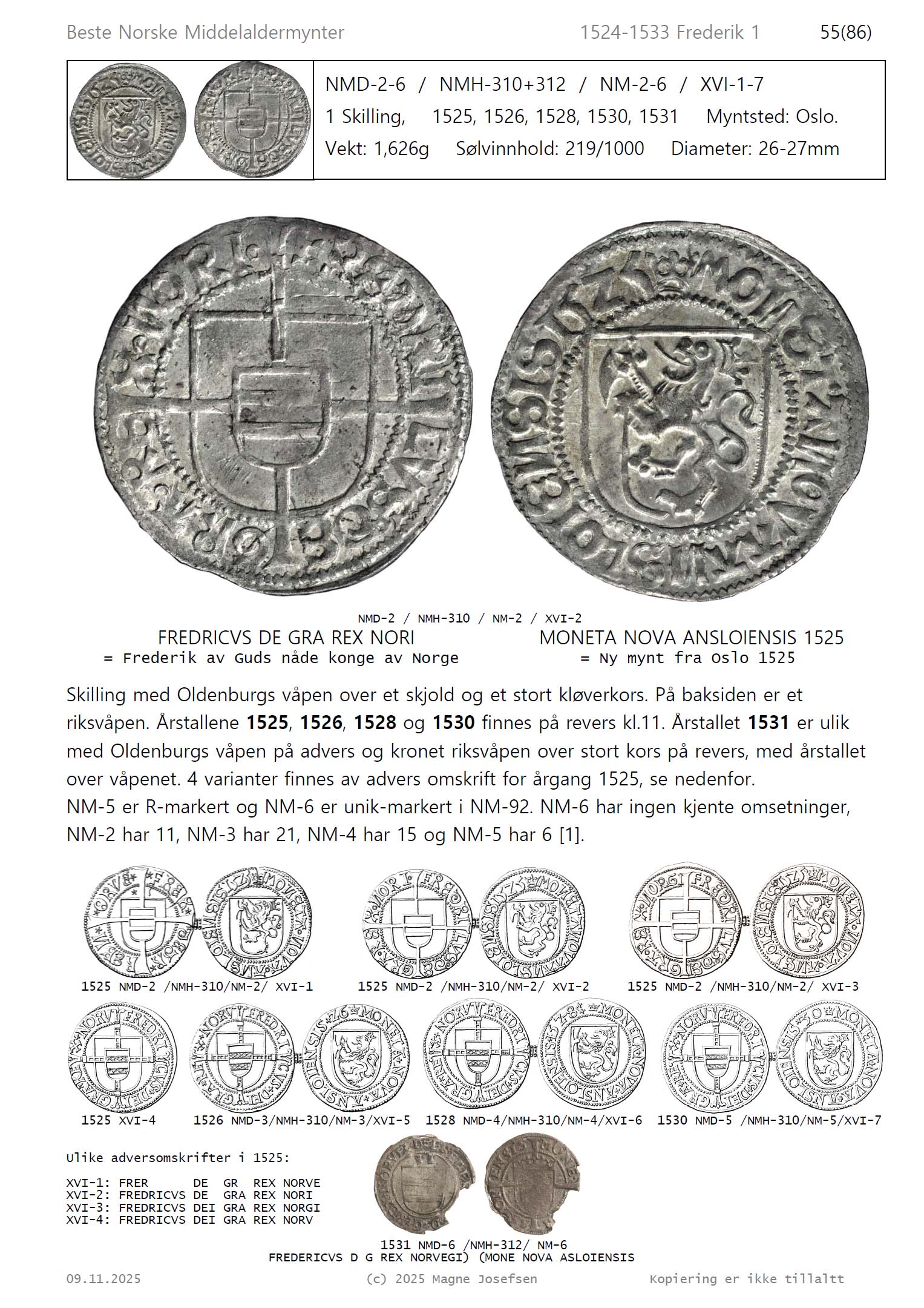 myntene fra perioden med store foto av alle mynttypene og tegninger av alle